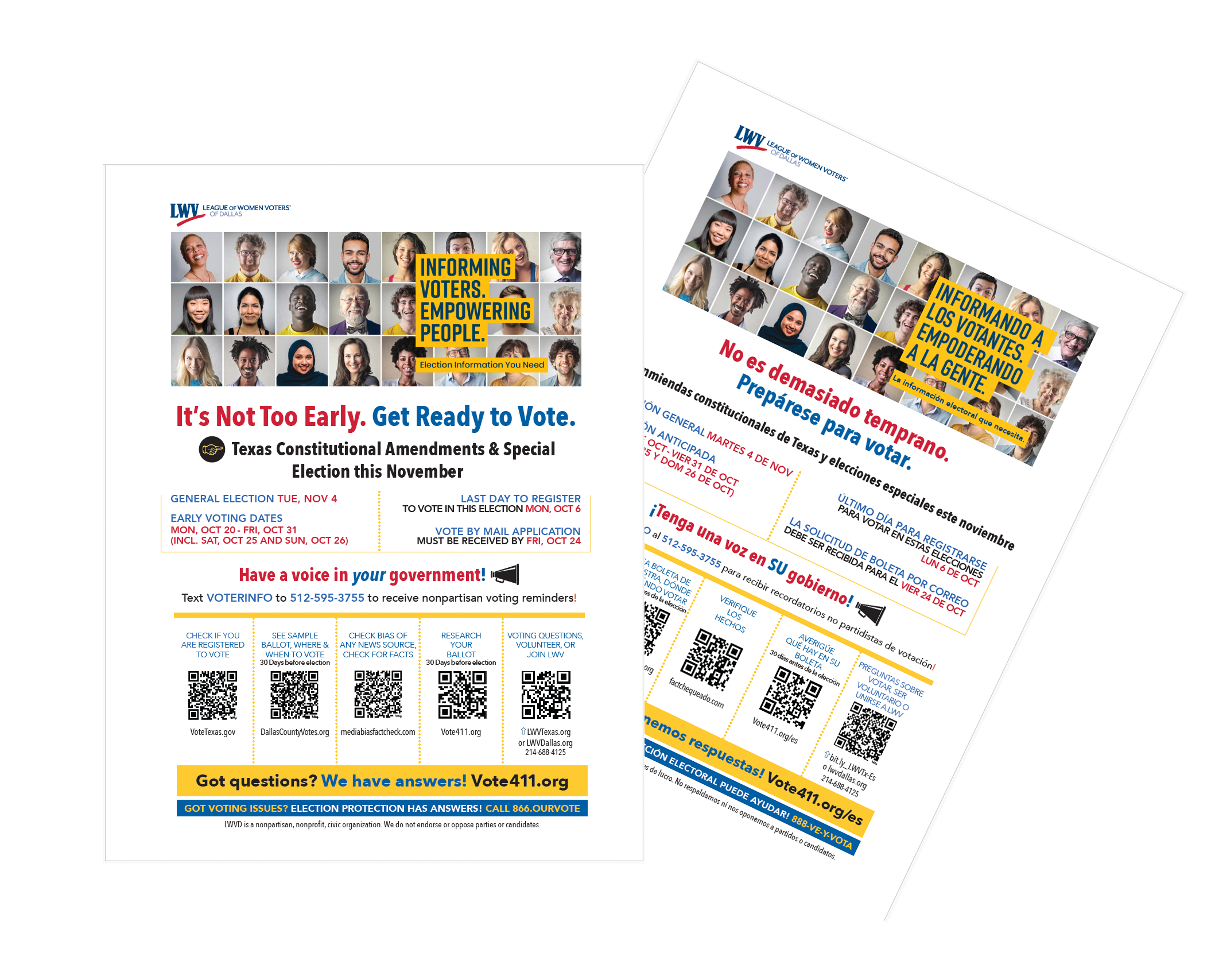 This year the funds we raise with your generous support will help us create, print and distribute our Voters Guides in English, Spanish and Vietnamese for distribution to voters all over Dallas County.