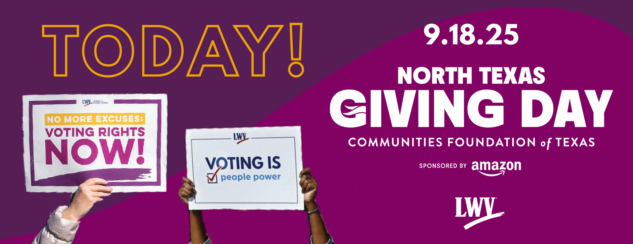 As North Texas Giving Day draws to a close, we want to express our heartfelt gratitude for your ongoing support of the League of Women Voters of Dallas. Your generosity has made a meaningful impact on our mission to empower voters and strengthen democracy in our community.