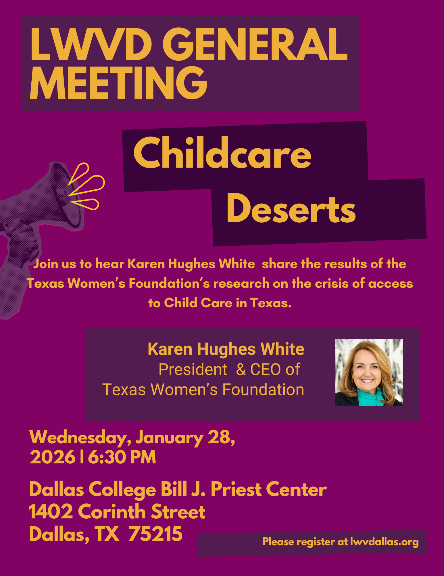 Interested? Please reach out to Diane Tasian at volunteer@lwvdallas.org or leave a message at 214 688-4125.